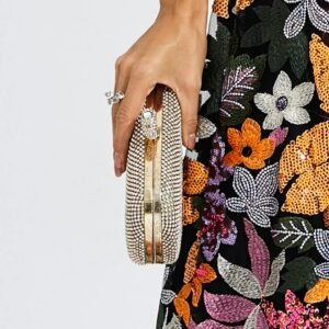 The Burton Gold Diamond Bag is a refined accessory that adds elegance to any occasion. This exquisite evening clutch features a silver diamond-encrusted design, perfectly complementing glamorous attire. One Size fits all Length: 19cmWidth: 5cmHeight: 10cm Colour may vary due to lighting on images.-CATCHALL